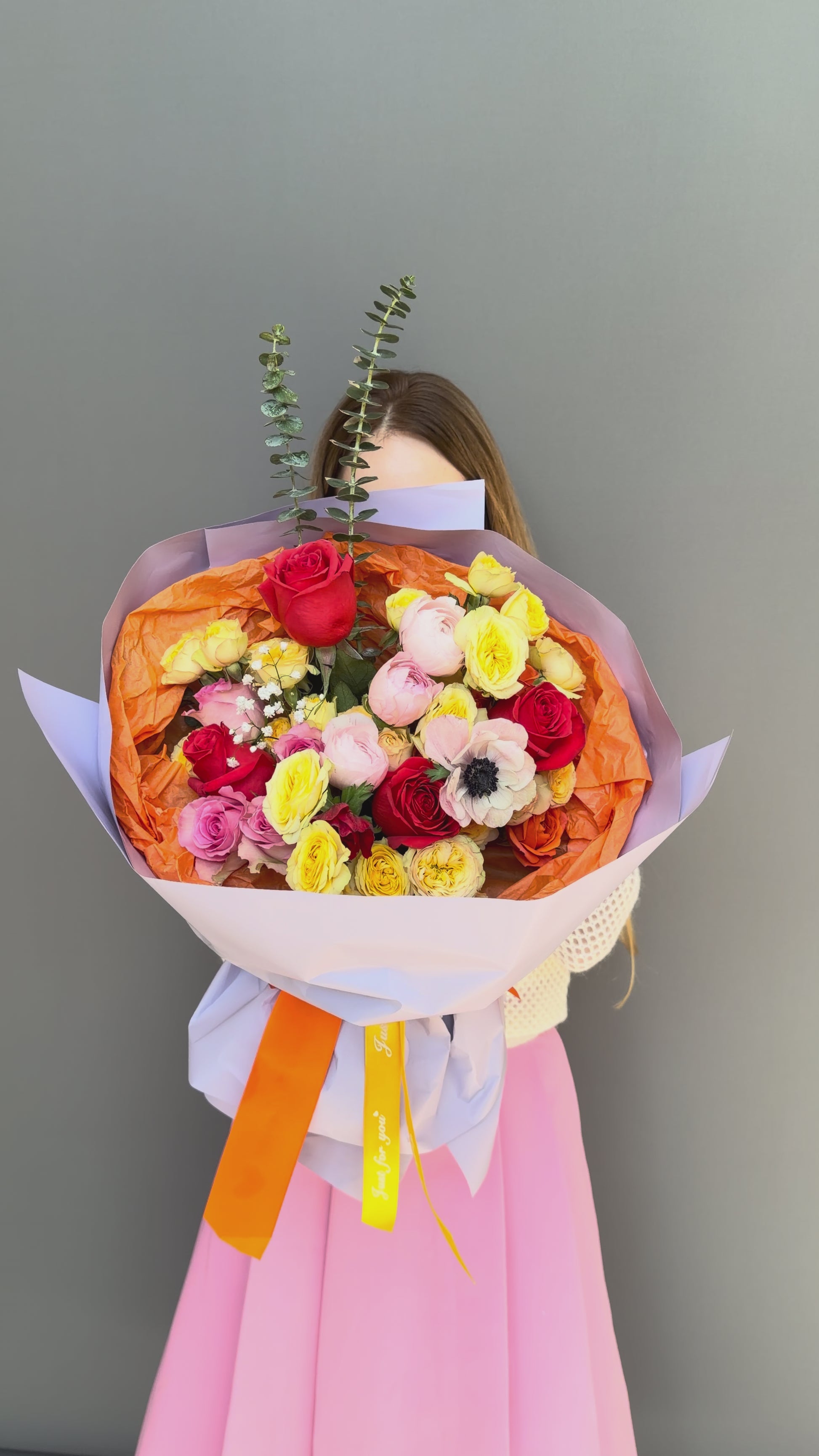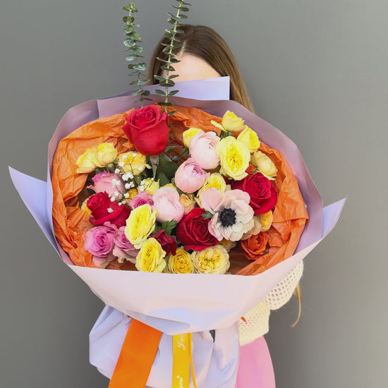 Fresh Valentine’s Day Flowers are ready to ship in Clarksville, Fulton, and Highland, MD.Make this Valentine’s Day unforgettable with a hand-tied bouquet of premium fresh roses, ranunculus, and exotic anemones. Our signature citrus-wrapped arrangement features vibrant yellow garden roses and deep crimson blooms, accented with fragrant silver-dollar eucalyptus and delicate baby's breath.